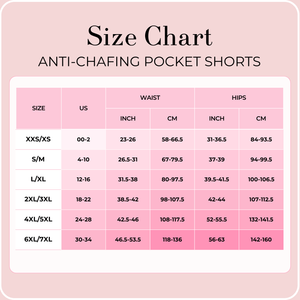 BOOMBA Anti-Chafing Pocket Shorts Size Guide