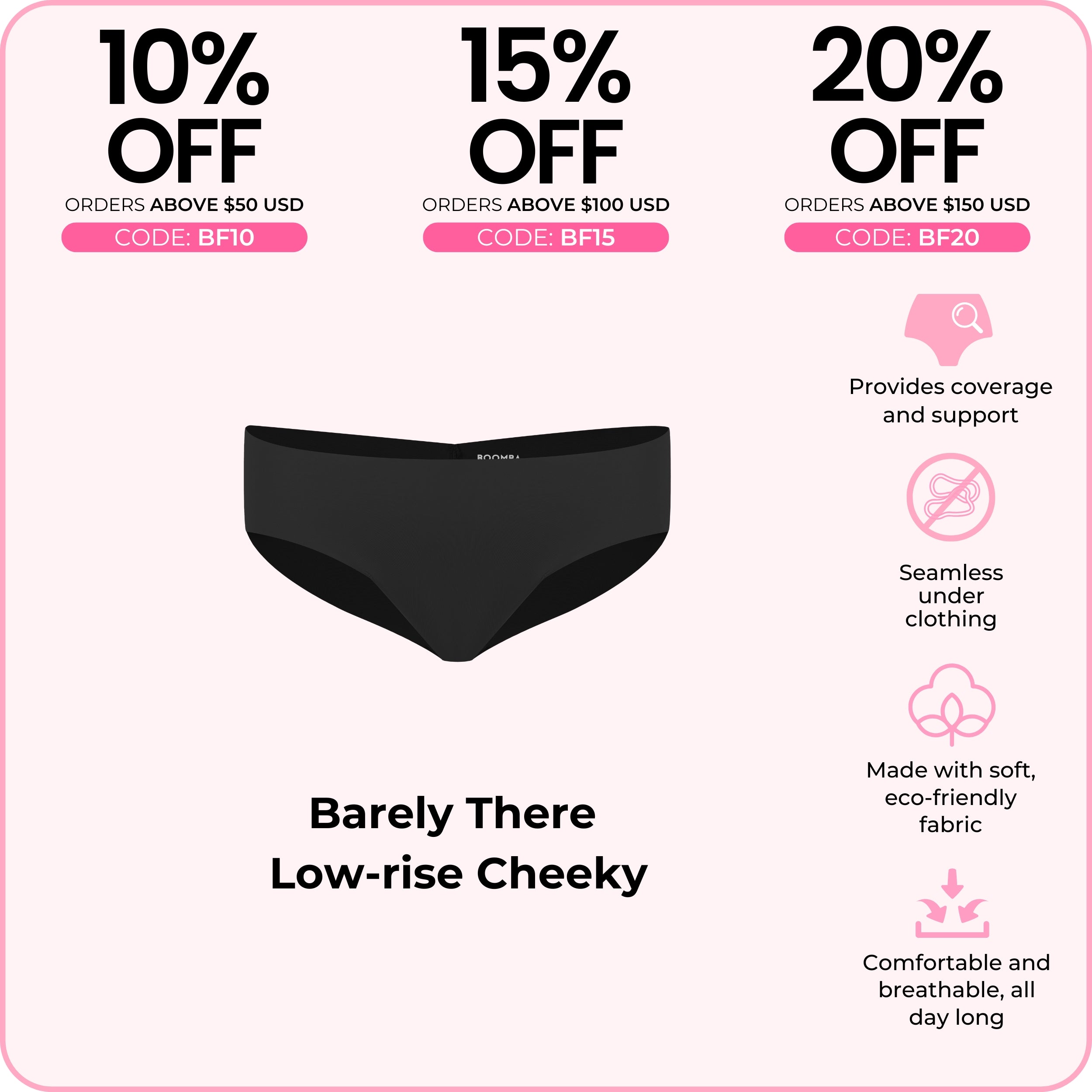 The BOOMBA Barely There Low-Rise Cheeky is like your best-kept secret—ultra-soft, seamless, and oh-so comfy! With a low-rise fit and breathable fabric, it stays invisible under clothes, giving you a smooth, flawless look. Perfect for everyday wear or slipping under your fave form-fitting outfits. Comfort, meet cute!