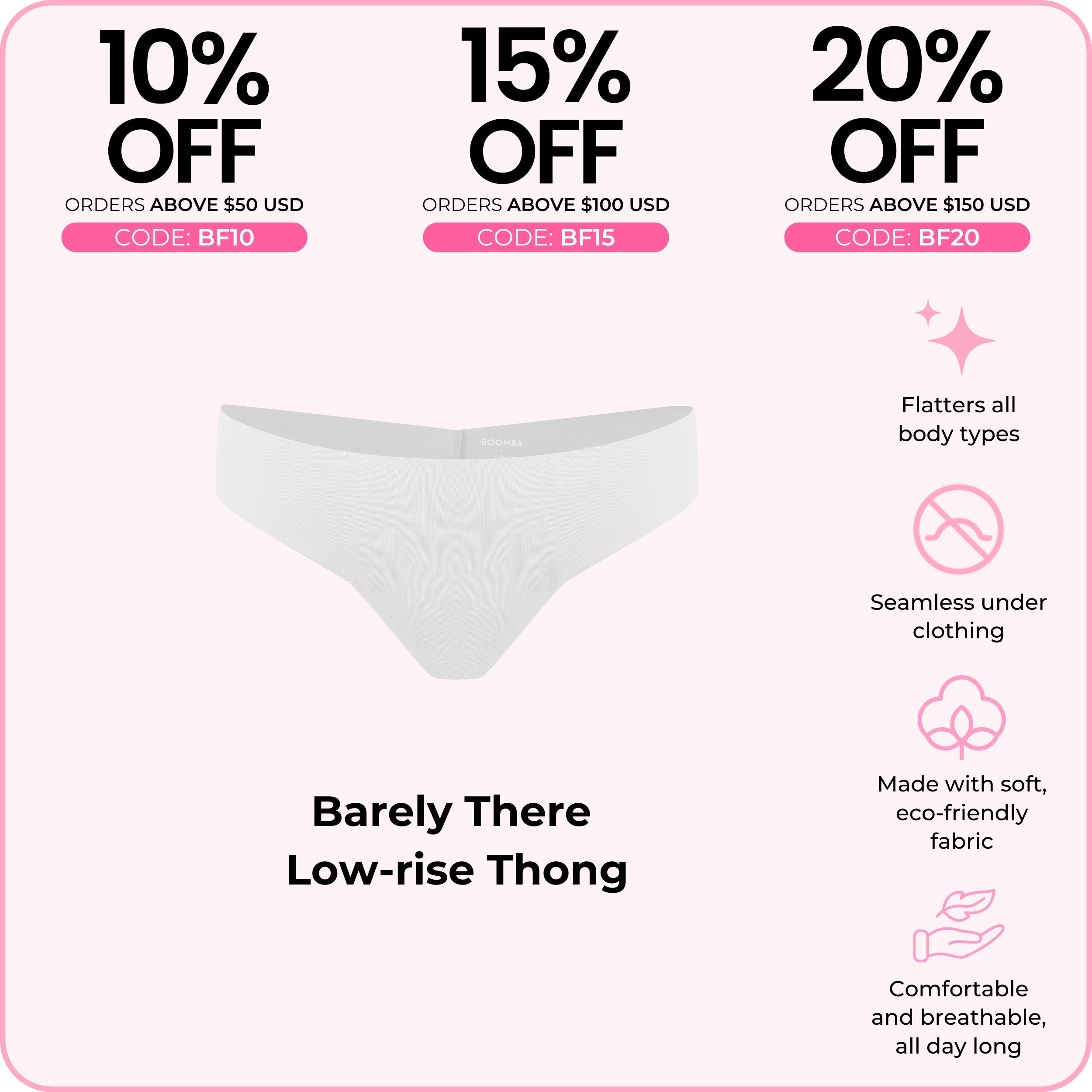 Meet the BOOMBA Barely There Low-Rise Thong – so lightweight and seamless, you’ll forget you’re wearing it! With a low-rise fit and thong design, it’s the secret to invisible comfort, no panty lines, and all-day wear. Who knew comfort could be this cheeky?
