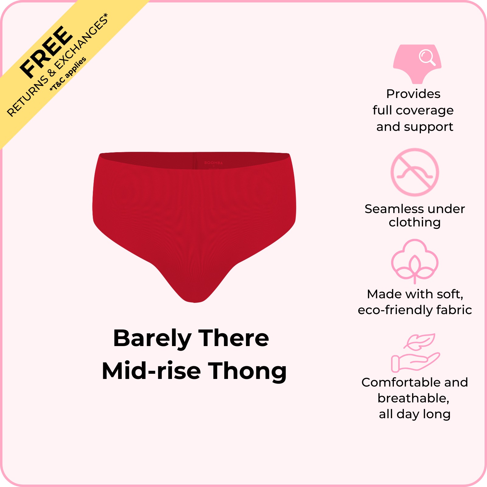 Introducing the BOOMBA Barely There Mid-Rise Thong – like a second skin, but way cuter! Made from ultra-soft, seamless fabric, this little beauty gives you all-day comfort and stays invisible under clothes. The mid-rise fit offers the perfect balance of coverage and style, making it ideal for everyday wear. It’s the little secret you’ll never want to take off!