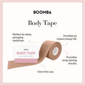 BOOMBA's Body Tape can be worn in various ways. Designed to contour with your shapes, our body tape is gentle yet strong, providing long-lasting results for up to 12 hours.