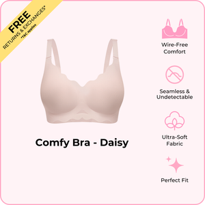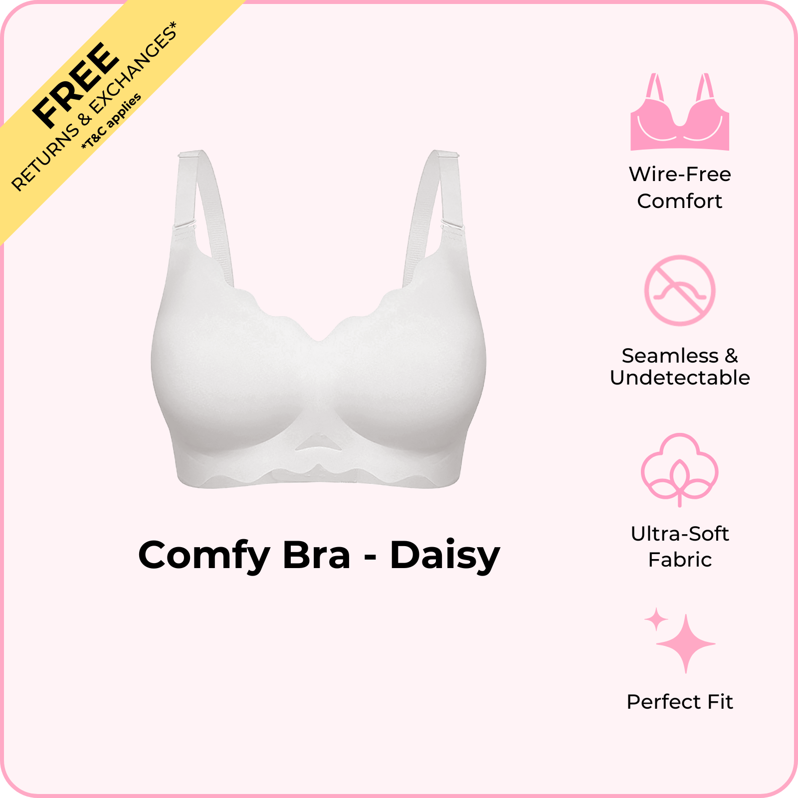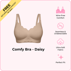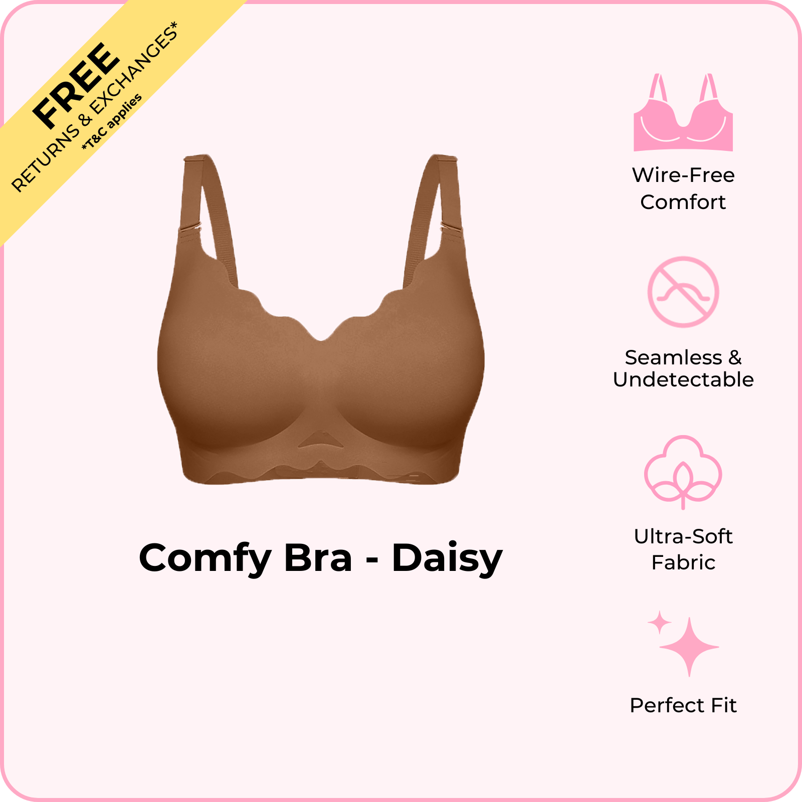 Meet Daisy, the bra that feels good without trying. No wires digging in, no awkward adjusting, just soft fabric that feels like a second skin. The seamless cups disappear under whatever you wear, so you can go about your day without thinking twice.