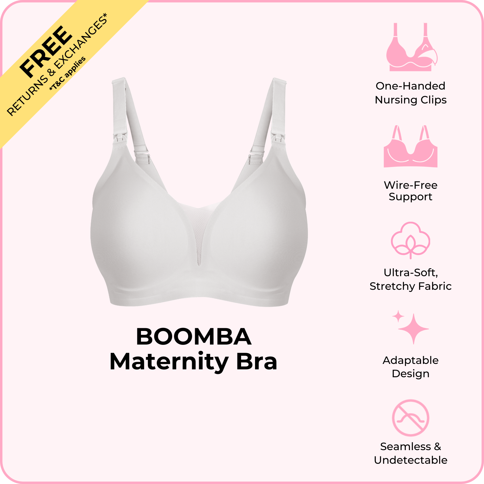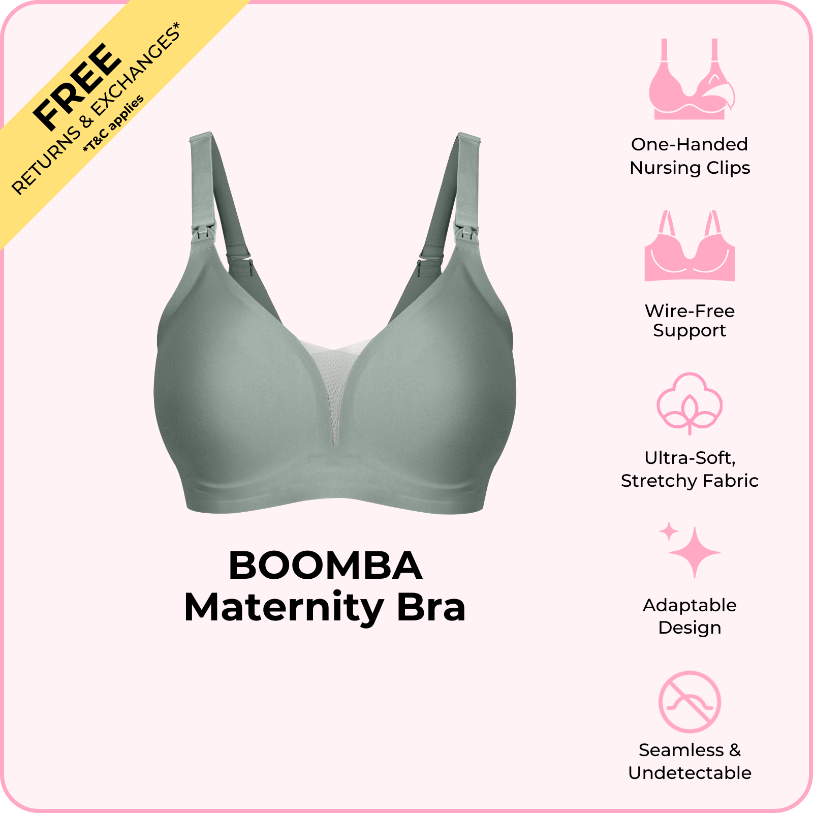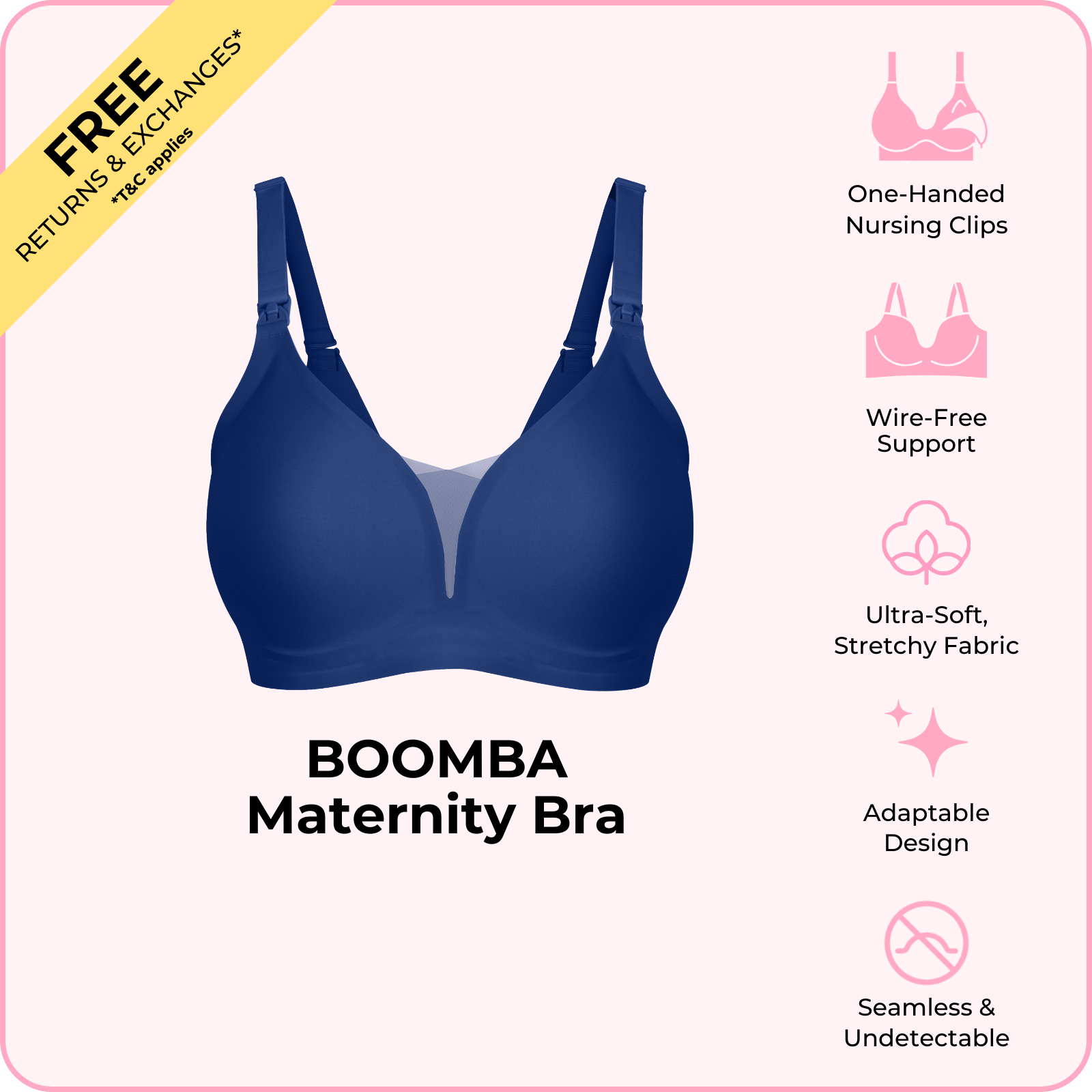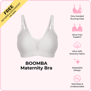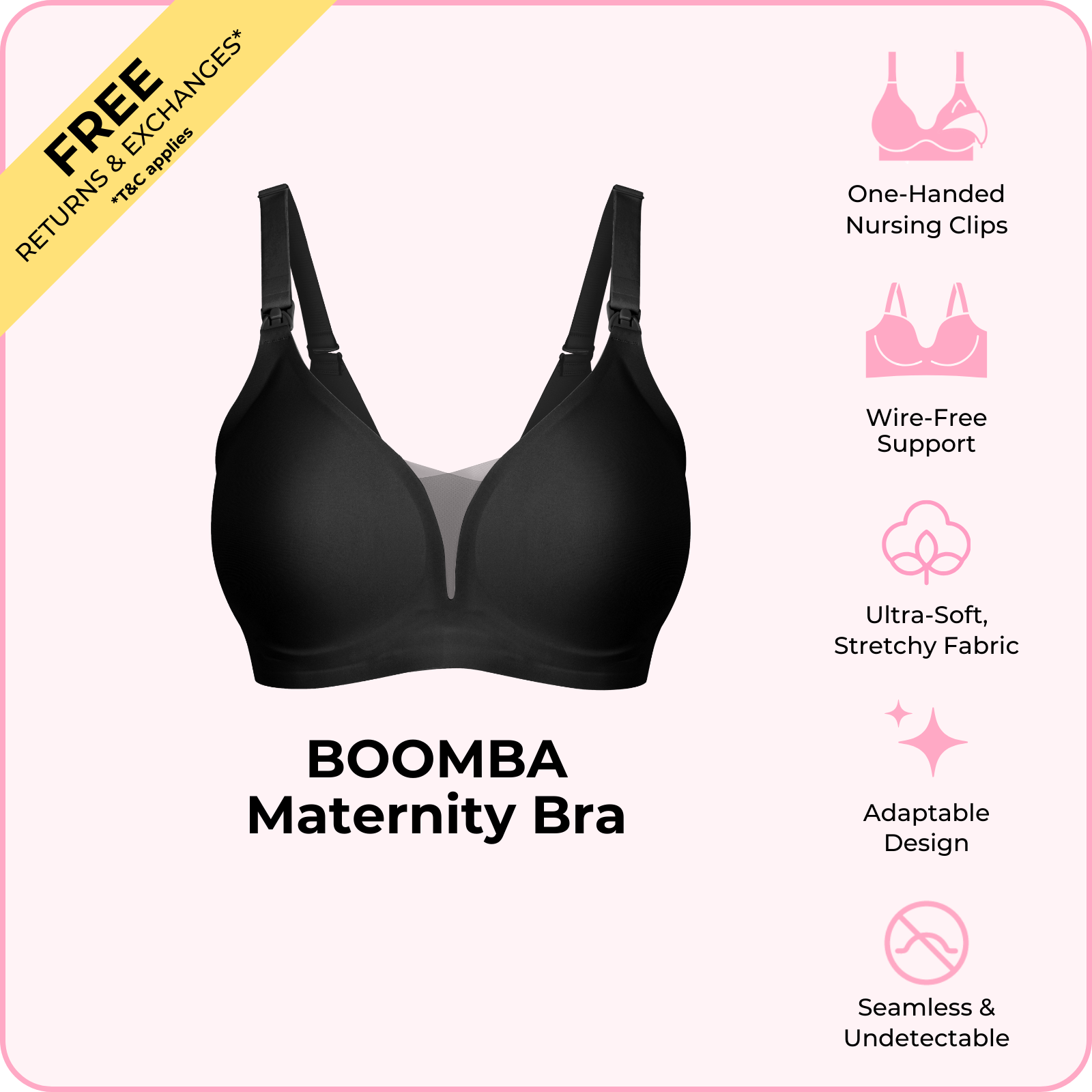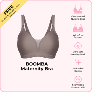 Our BOOMBA Maternity Bra delivers wire-free support with one-handed nursing access for stress-free feeding. Made from ultra-soft, stretchy fabric, it adapts as your body changes while still giving you the lift and support you need. Crafted with premium materials, it stays in shape wash after wash, no sagging, no stretching out.