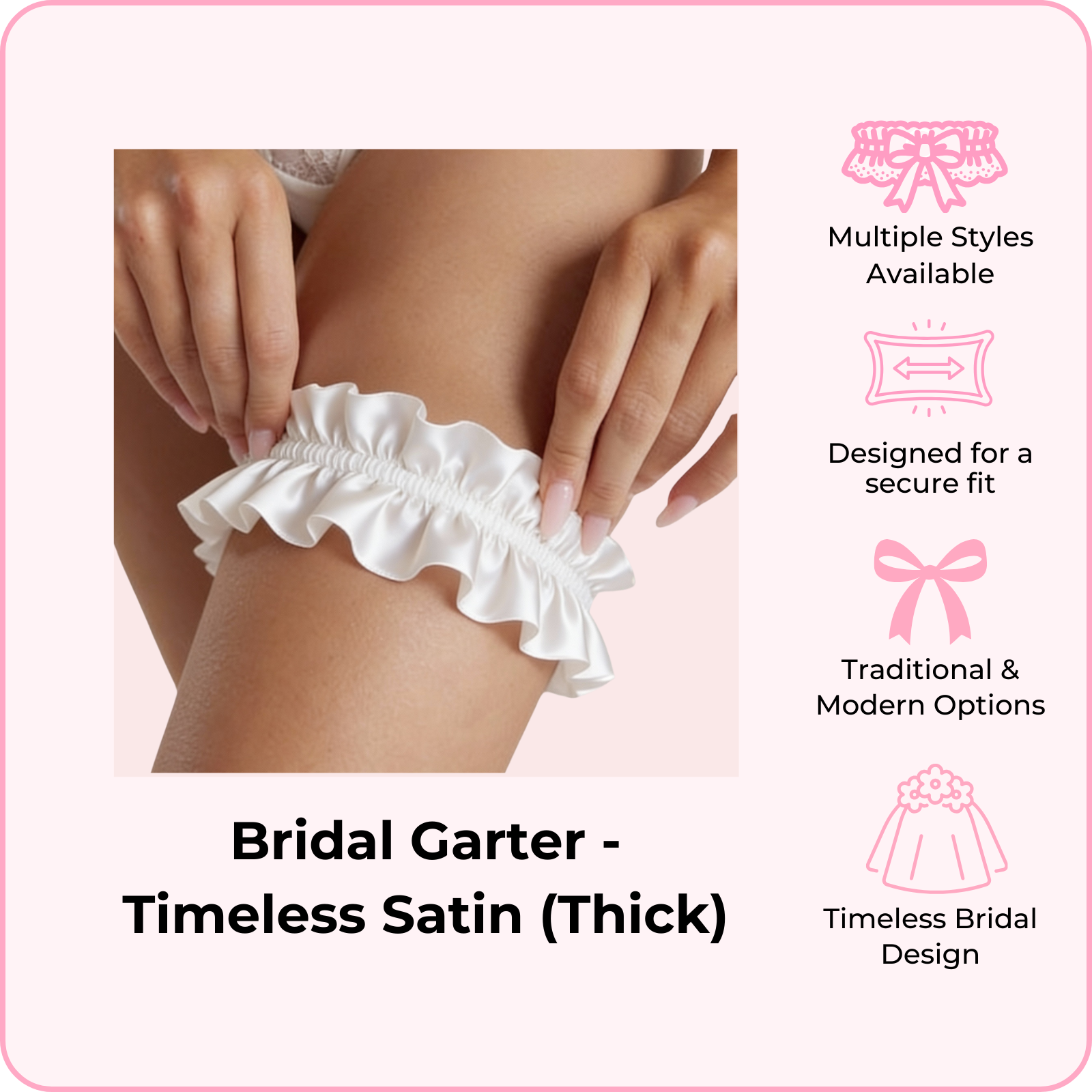 Available in a variety of styles from traditional lace to modern designs, each garter is crafted with soft, delicate fabrics that stay in place securely throughout your big day. Whether you're looking for "something blue" or timeless ivory elegance, we have a style that matches your vision.