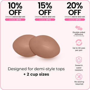 Cleavage in a sweetheart neckline? A shortened version of our Ultra Boost, the Demi Boost insert, is specially designed for low cut demi style clothing! Also boosting up to 2 cup sizes instantly.