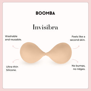 How to Remove: To remove your sticky bra, unclasp and gently peel off one cup at a time, starting from the top outer edge. Reapply protective films onto the sticky bra and store back into the BOOMBA gift box, away from direct sunlight.