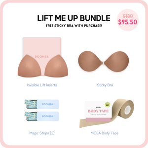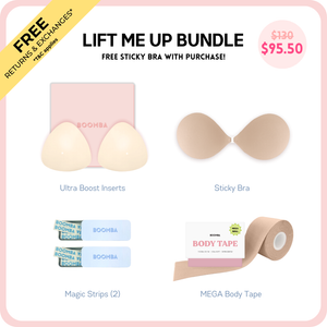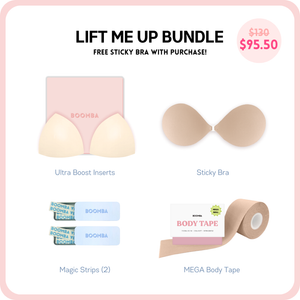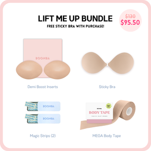 How to Remove: To remove your sticky bra, unclasp and gently peel off one cup at a time, starting from the top outer edge. Reapply protective films onto the sticky bra and store back into the BOOMBA gift box, away from direct sunlight.