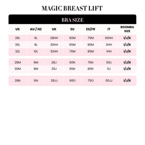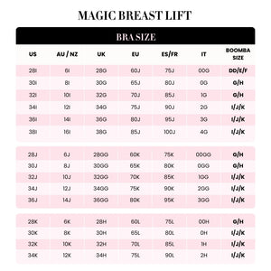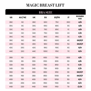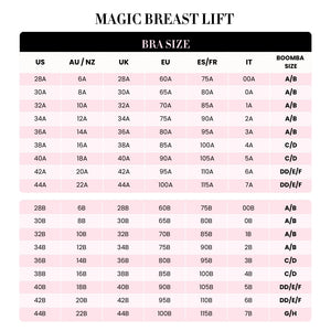 | US | AU/NZ | UK | EU | FR/ES | IT | BOOMBA BRA SIZE |