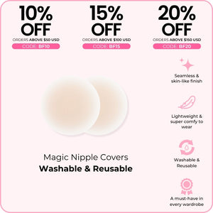 These Magic Nipple Covers are essential in every wardrobe. Seamless, lightweight, with a skin-like finish, these Magic Nipple covers are sure to blend effortlessly into your skin, staying undetectable under your top.