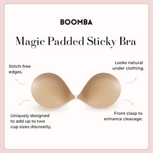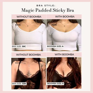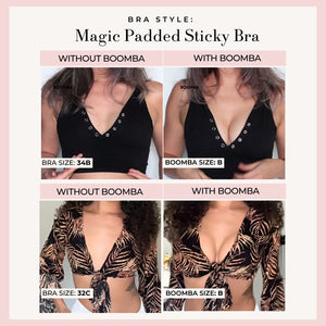 BOOMBA’s Magic Padded Sticky Bra is uniquely designed to add cup sizes discreetly.