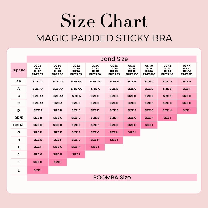 Magic Padded Sticky Bra Sizing Guide