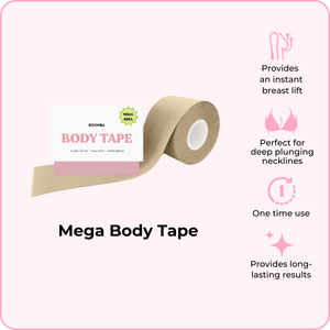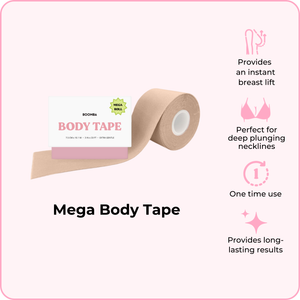 BOOMBA's Mega Body Tape can be worn in various ways. Designed to contour with your shapes, our body tape is gentle yet strong, providing long-lasting results for up to 12 hours.