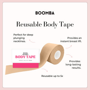 BOOMBA's Reusable Body Tape can be reusable up to five times. Designed to contour with your shapes, our body tape is gentle yet strong, providing long-lasting results for up to 12 hours.