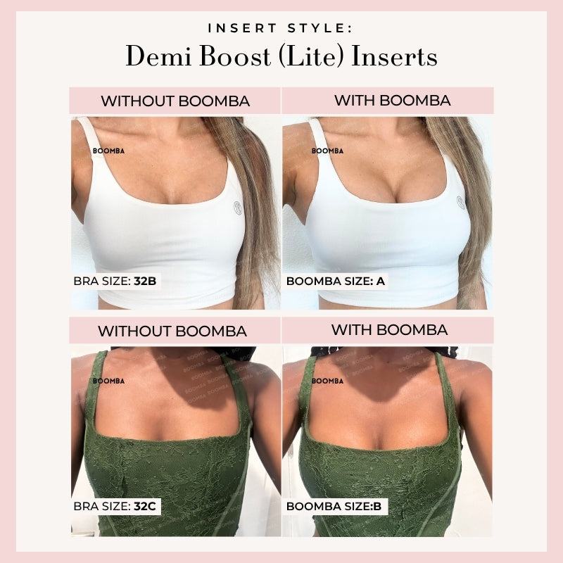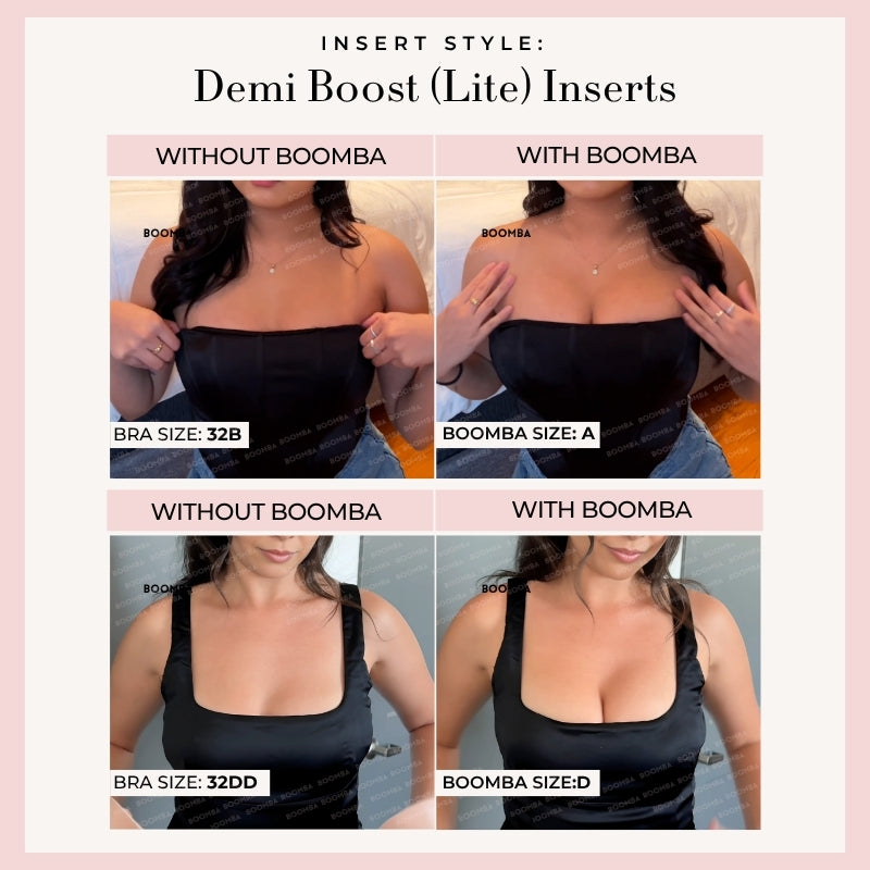 Demi Boost: The shortened version of our Ultra Boosts. Lifts and adds 2 cup sizes, perfect for sweetheart necklines.