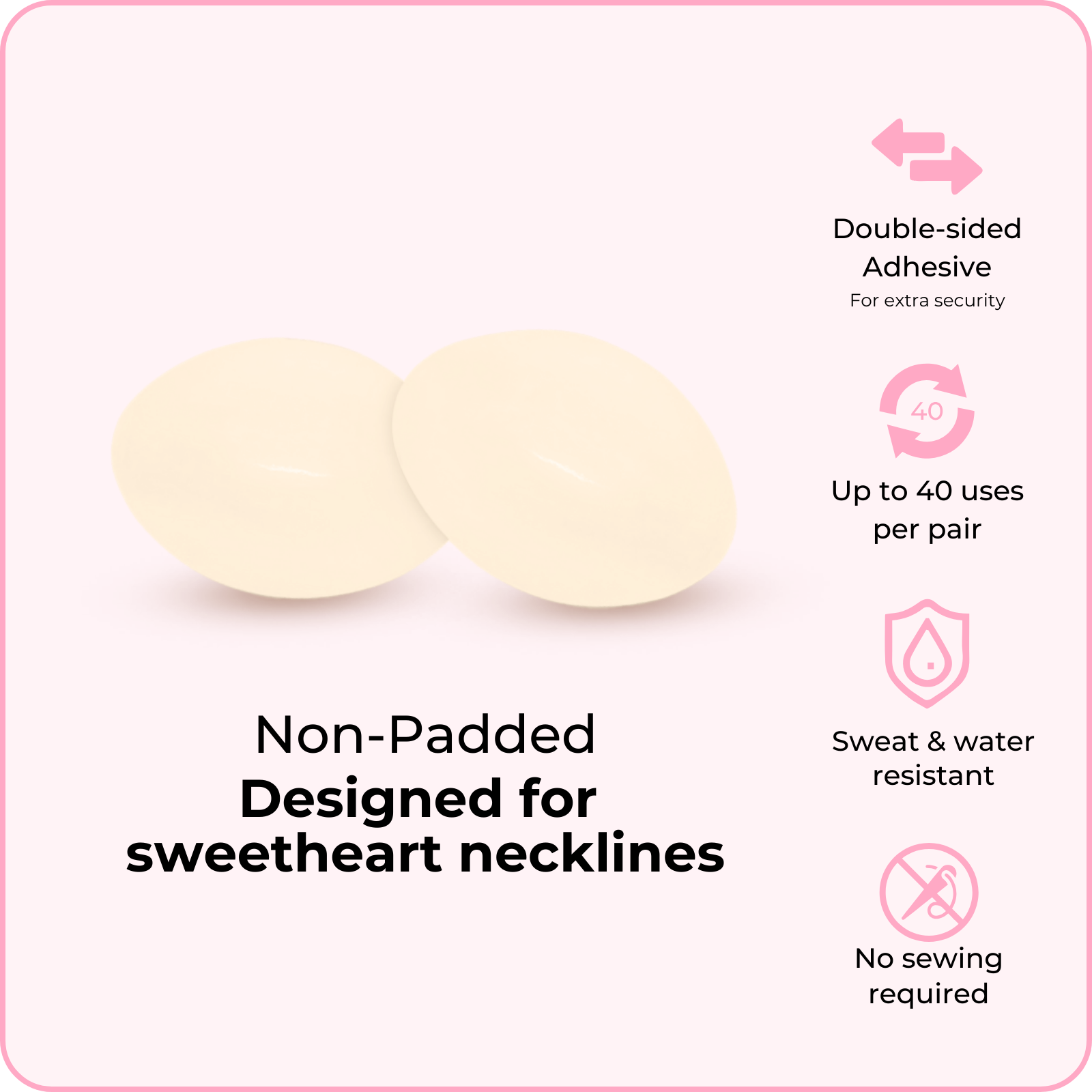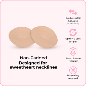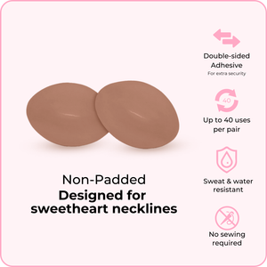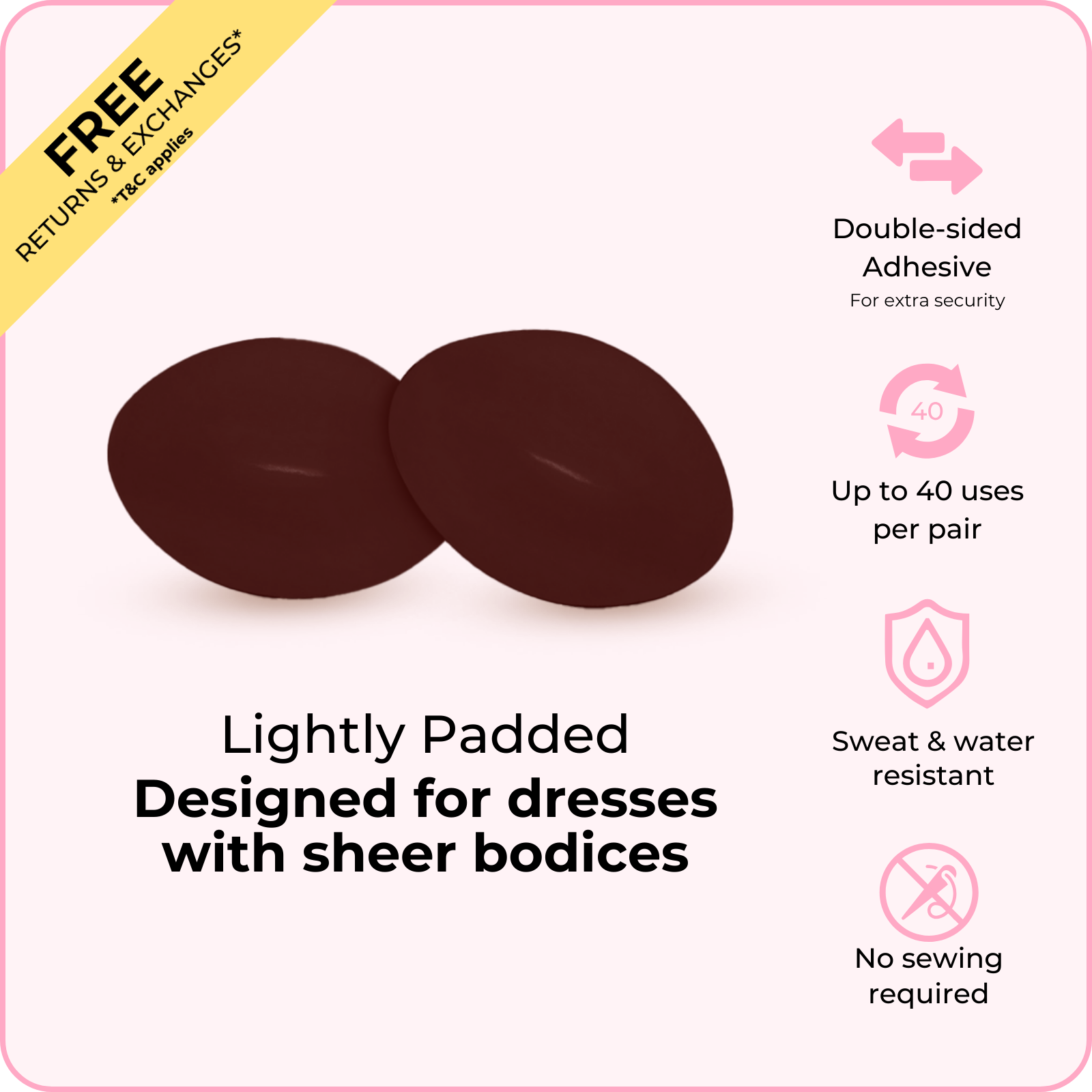 These lightly padded inserts are specifically designed to provide a subtle lift while also providing security against embarrassing wardrobe malfunctions. Perfect for wedding dresses with sheer bodices.