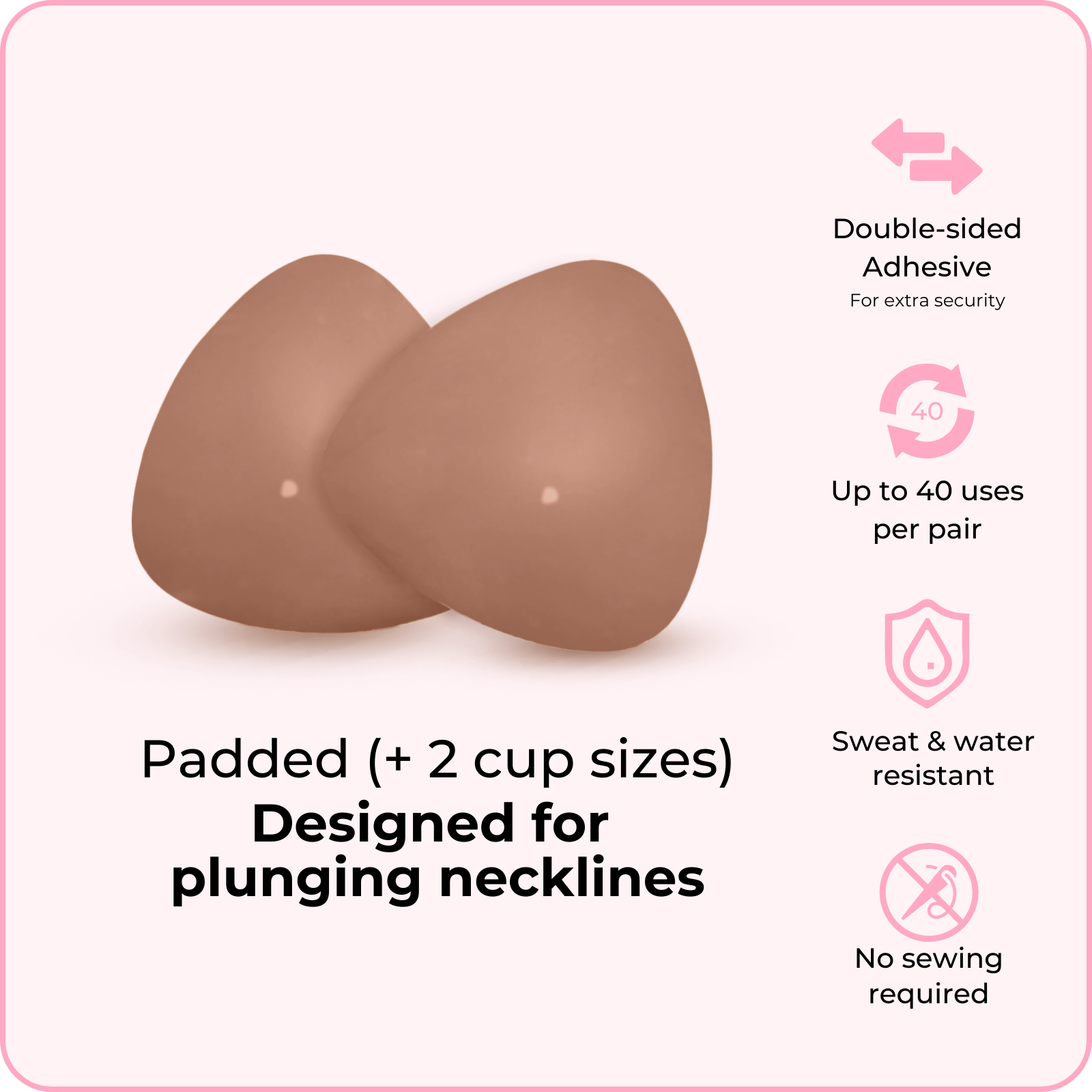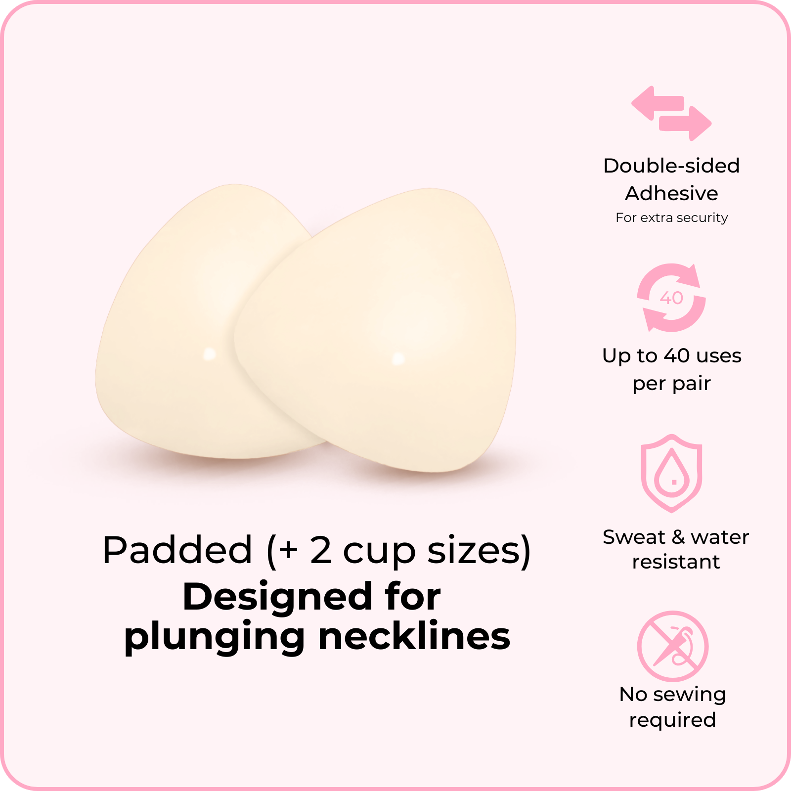 A boost in volume? Our most padded insert, Ultra Boost, is perfect for users looking for a boost in size (up to 2 cups)! Designed for v-neck tops!