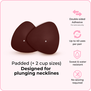 Preparation is key! Before using BOOMBA inserts, please ensure breasts are clean and dry. Any makeup, oil, lotion or other body products may hinder the inserts from sticking onto your skin properly. Put the clothing item on your body first, then place inserts onto the clothing item, then scoop breasts and stick onto the insert to secure.