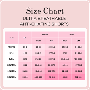 Ultra Breathable Anti-Chafing Shorts Size Guide